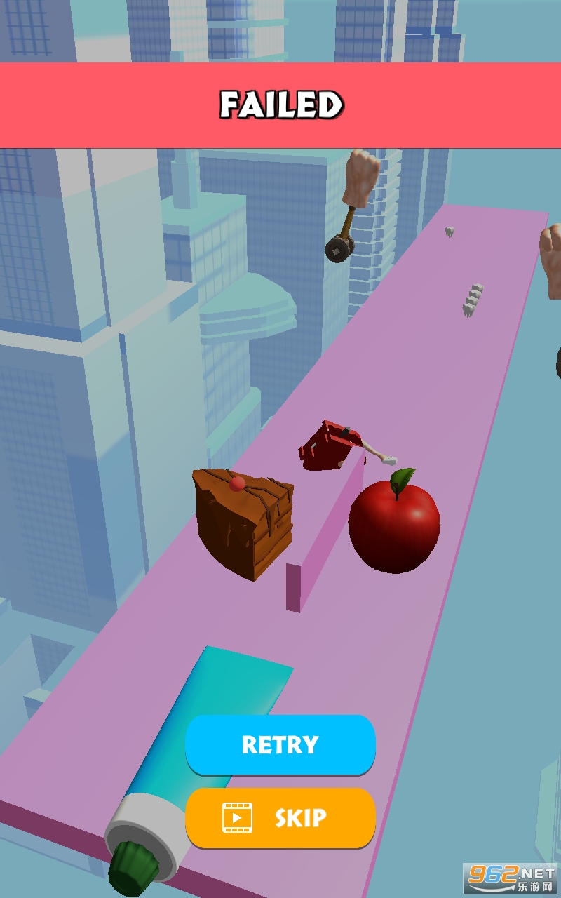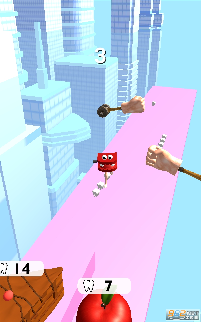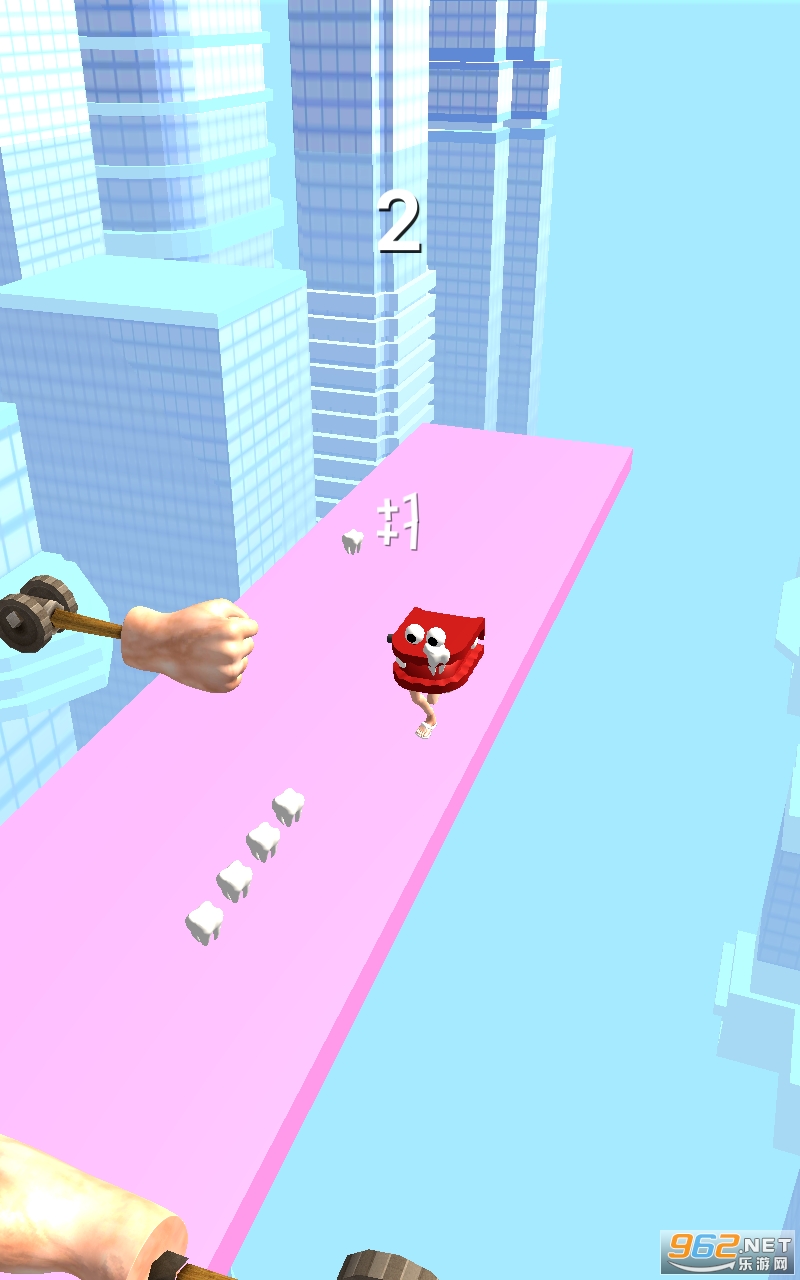 2.在卡通风格的3D场景中,可以继续奔跑,积木会自动铺路,玩法也很有趣。