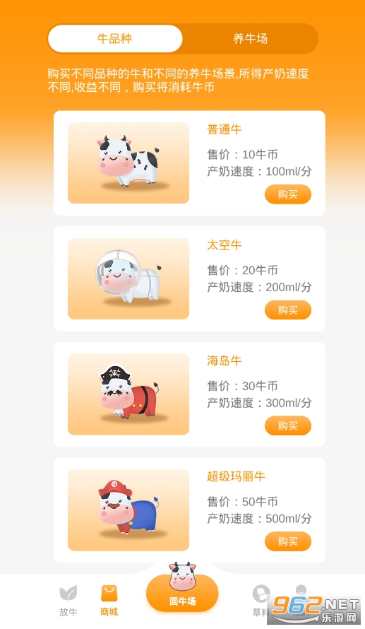 1、玩家可以将小牛进行不断地合成,经过合成,品质也会相应的得到提高