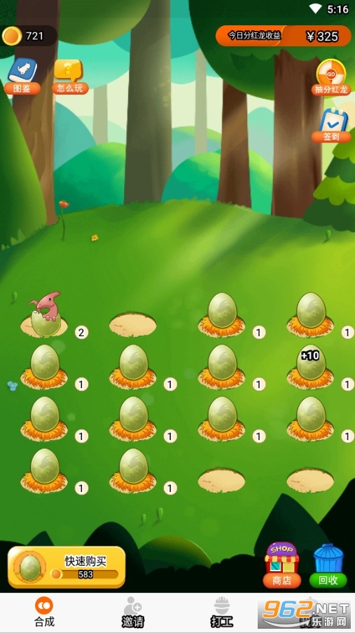 不断合成得到更高等级的恐龙,这是你的任务,享受合成带来的乐趣吧,最关键的是在合成过程中能够收获许多红包,每天有超多的任务在等着你去完成,认真对待这些任务,一样能得到红包奖励。