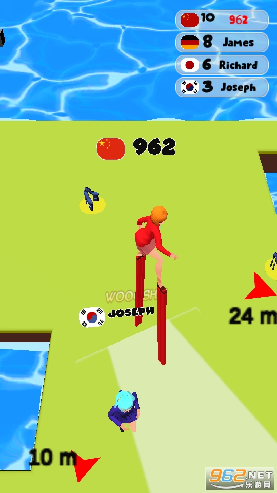 1、你可以进入关卡收集高跟并击败对手,踢掉所有对手或将其推入水中以消除对手;