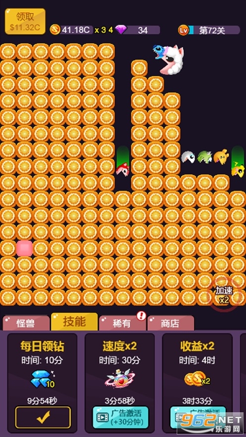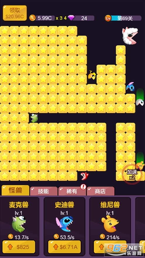 2、不断用赚得的金币升级吃豆人的各项属性,就可以加快吃豆子的速度;