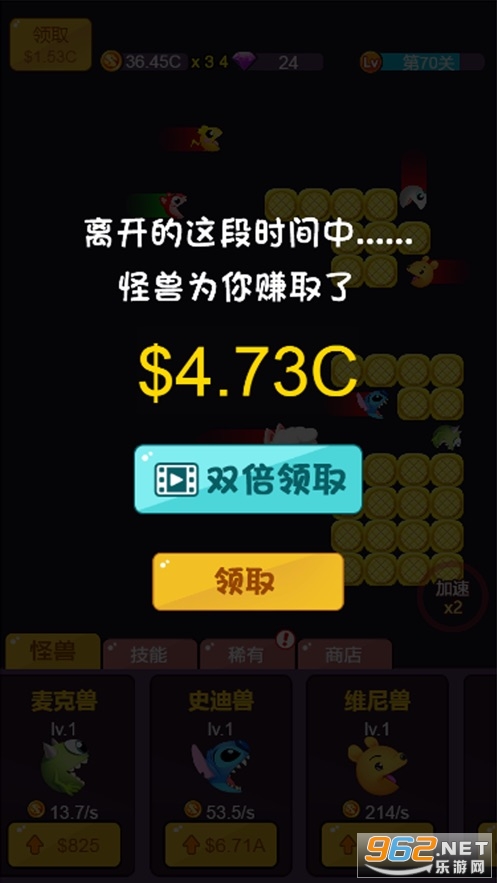 1、轻松简单的游戏,完成任务的速度会非常快,放置离线也有收益可以获得;
