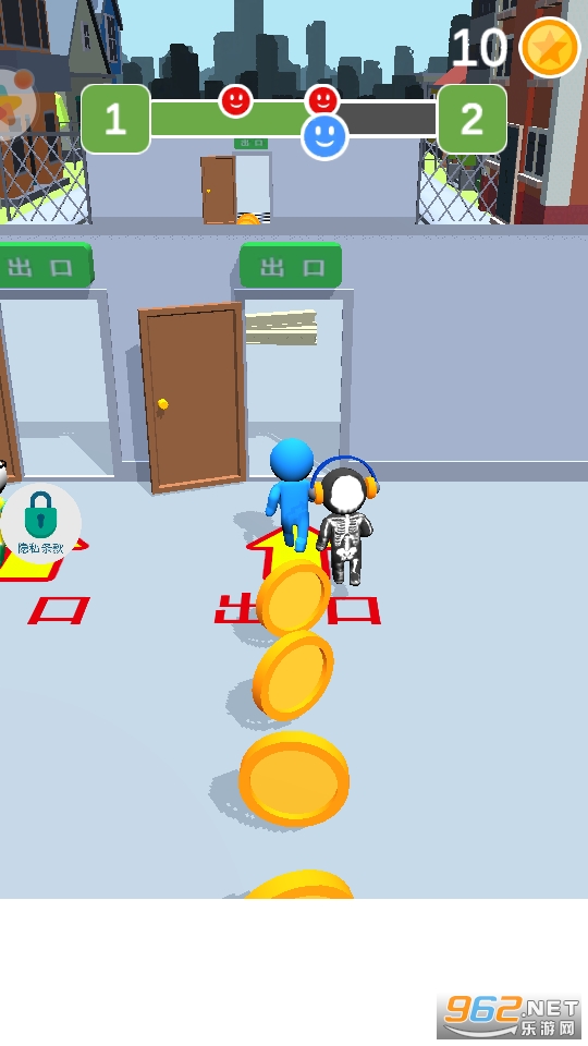 看起来好像挺简单,但是还是比较考验玩家的反应能力的,你必须要快速的从门中通过才可以,每个门只能容纳第一个通过的人,后面的就被关在门外了哦!