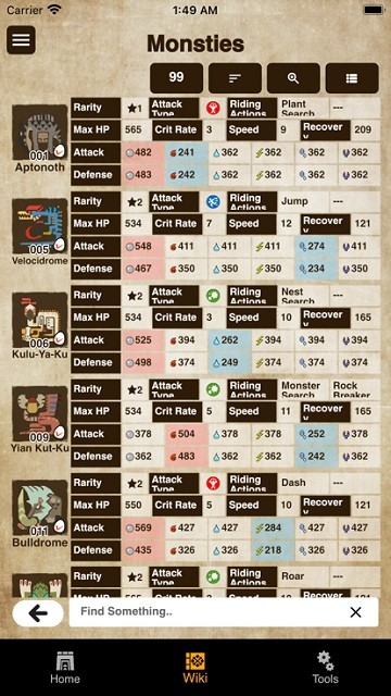 所有的怪物的详细属性都显示在wiki内,让你第一次碰到不熟悉弱点的怪物也可以针对出招。