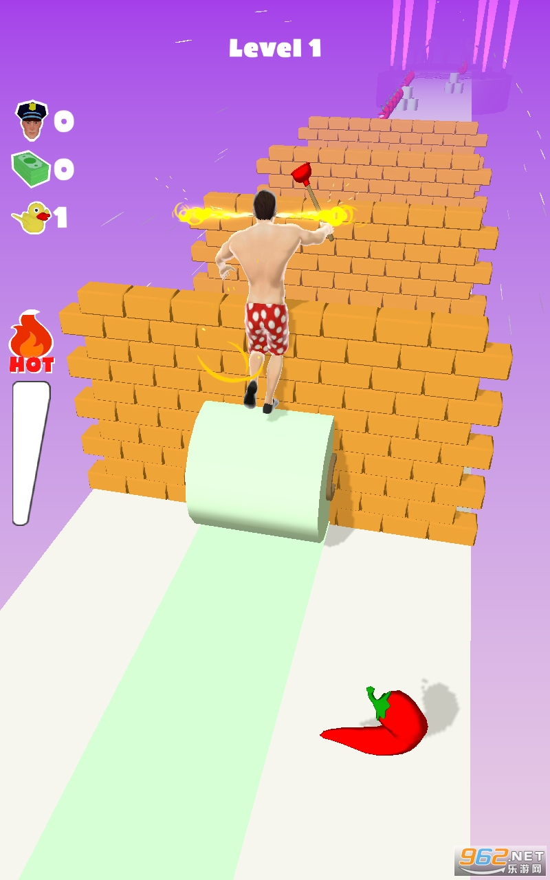 在这里玩家需要控制角色在厕所进行闯关。在这过程中会有各种不同的障碍,在这里玩家需要让角色克服障碍进行奔跑。