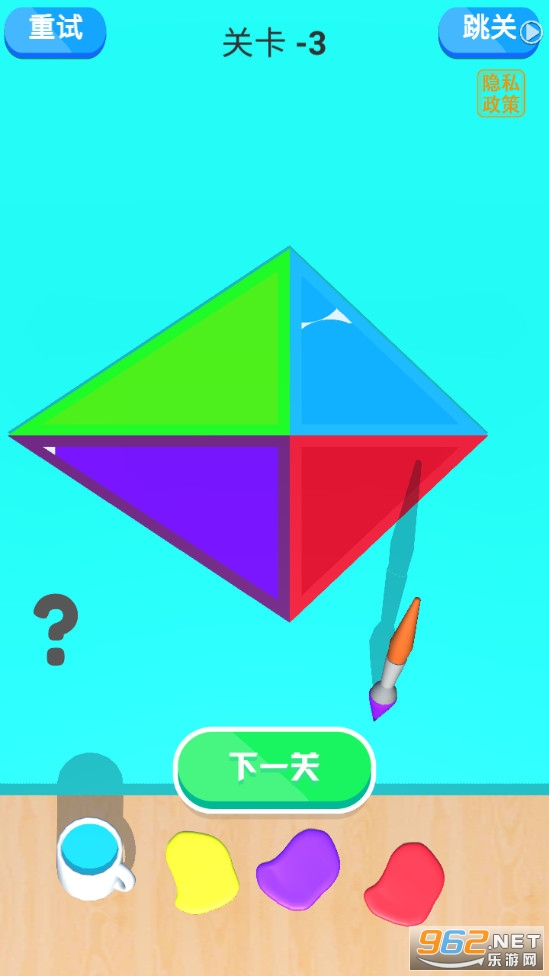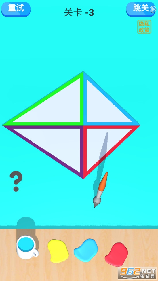游戏玩法简单,点击颜色让毛笔沾上颜料然后进行染色,可以将两种不同的颜色混合来获得需要的颜色,每个关卡的图像都不同,注意合理的选择颜色和清楚颜色,喜欢的朋友可以下载试试。