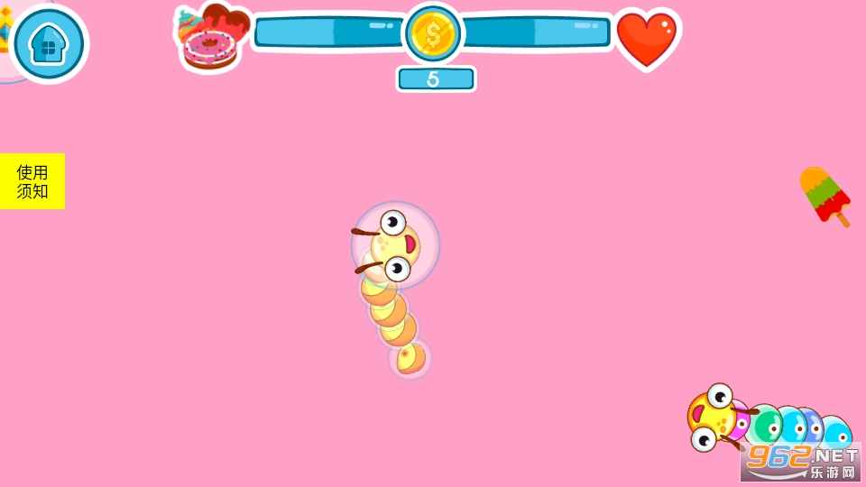 在这里你可以与有趣的虫虫一起进行有趣和令人兴奋的冒险。我们的虫虫非常饥饿,你的任务非常简单——喂它。您将管理一个有趣的虫虫,并引导它到各种美味的水果和硬币,从而赚取自己的积分。