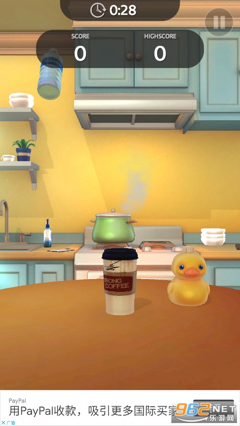过去我可是翻转瓶子的高手,不同样式不同重量的瓶子都需要使用不同的力度,游戏中你需要让瓶子不断的翻转落地来获得更多的分数,翻转的圈数越多获得的分数就越高,游戏的玩法轻松有趣,推荐给喜欢休闲游戏的玩家。