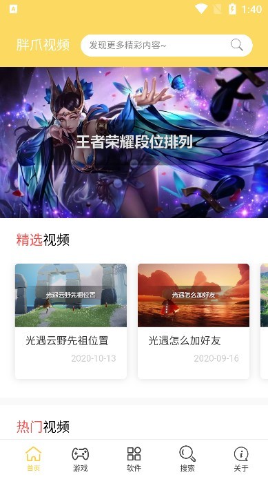 胖爪视频app是一款专为玩家们而打造的综合性平台,不仅提供海量的游戏视频内容,还有各种游戏攻略与技巧.用户能够在平台上发布自己的内容,为大家的游戏生活更加的舒适.感兴趣的朋友欢迎来下载.