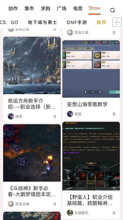 发现支持浏览图文、视频、交易信息、开黑信息、不同游戏的集市信息;