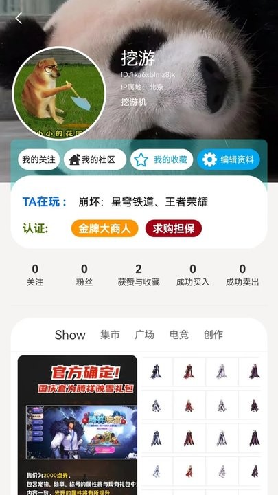 支持用户修改昵称、签名和挖游机号;