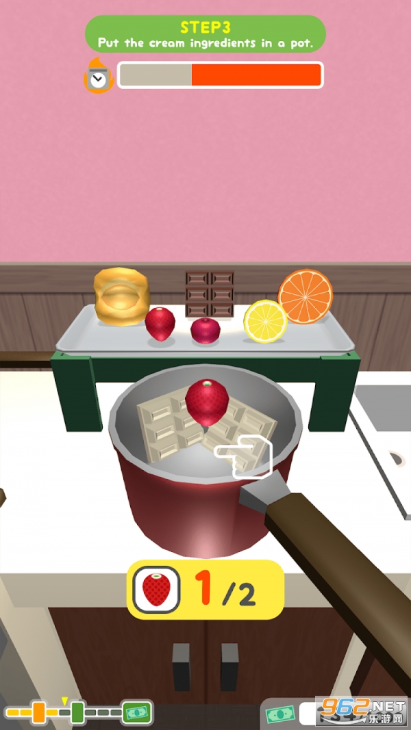 2、控制关卡中的材料放入锅中进行煮炖,来制作出各种好吃的糖果