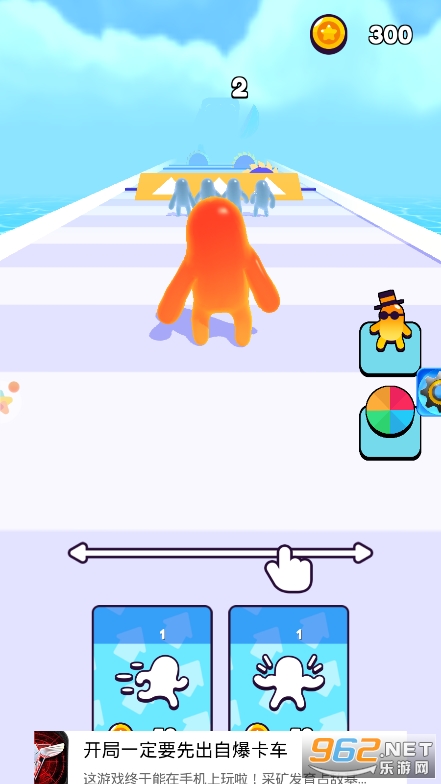 2、灵活操作小人在赛道中前进,收集这里的各种道具,让你的胜利变得更加强大;