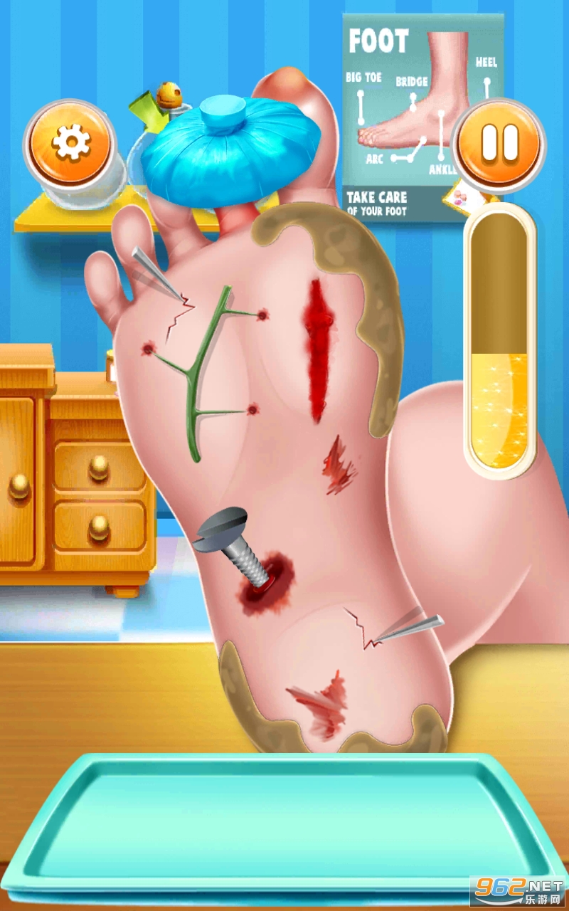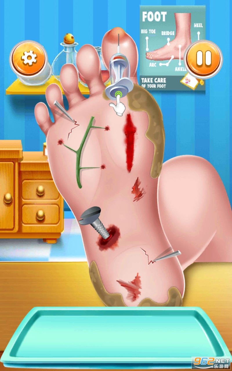 1.用磁铁清除脚上的铁片,像一个真正的医生一样在脚上使用缝线和绷带