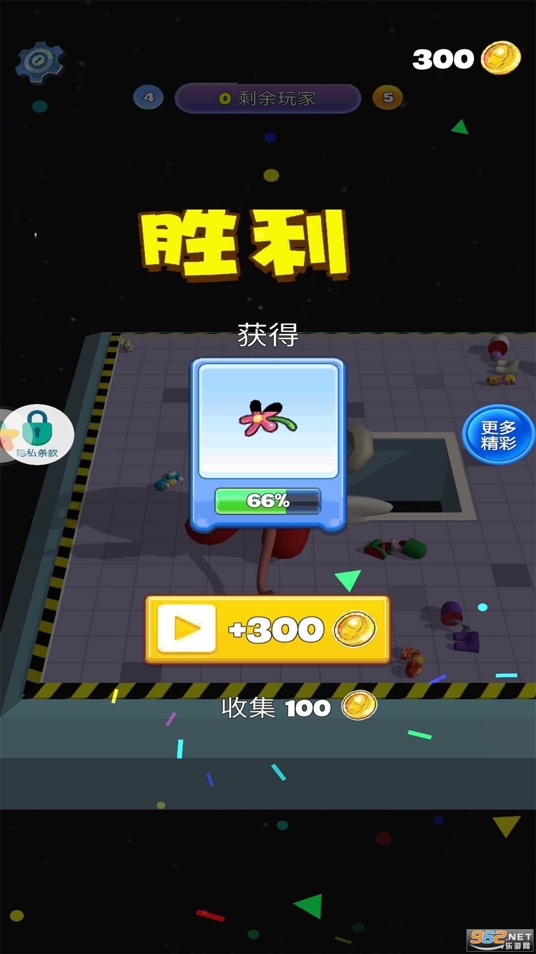 3、第1关会留下45个人,关卡比较耳熟能详的是跷跷板,撞门等一些难度不大的关卡(此外根据你关卡表现不同给予的奖励也不同)。