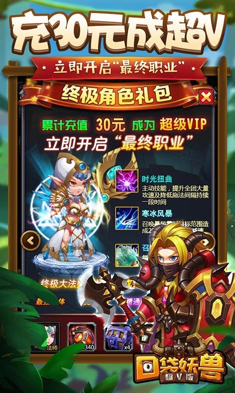 2、充值30元成为超V,立即开启“最终职业”,终极法师登场,战力瞬间登顶