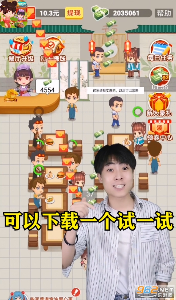 一款趣味性十足的经营赚钱游戏,这款游戏玩家可以轻松无忧的享受,通过经营自己的餐厅赚取红包,可以直接提现,让玩家真正的体验到玩游戏赚钱的乐趣,是您掌上经营赚钱游戏的首选,还在等什么,快来下载吧!