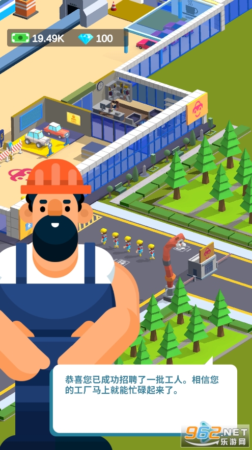 2、招募更多的员工帮助你去扩大工厂,游戏中的卡通界面非常的迷你。