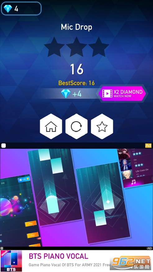 非常好玩的一款节奏闯关游戏,里面有着大量的关卡让大家挑战,丰富的bts音乐,大家可以通过闯关的方式来解锁bts成员的壁纸,解锁更多的歌曲去挑战,边听歌,边锻炼你的反应和手速!