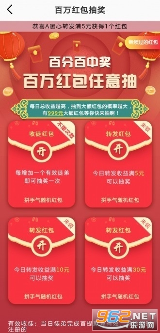 最少10元起现金返还,提10元返2块,提20返6块,较高40元提现红包奖。