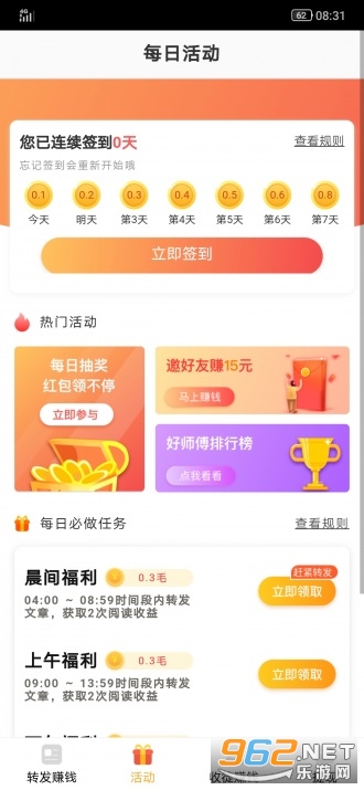 一款轻松的手机赚钱app,简单的赚钱方式方法,没有任何的费用,也不需要任何投资,每天看看资讯做做任务就来赚红包,喜欢就来体验一下吧!