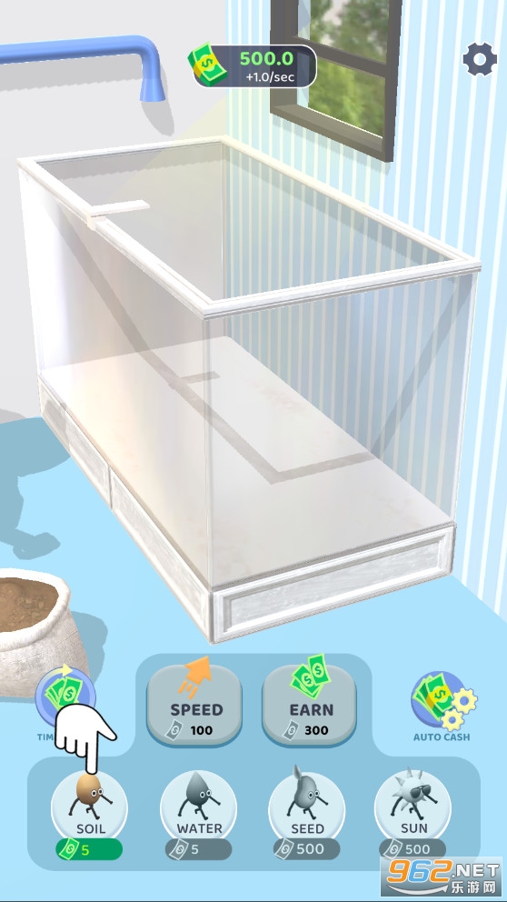 2、空闲创建为您提供了千载难逢的机会,使您在水族馆内实现梦想的风景,在这个独特的游戏中,您必须使用土壤,水,种子和阳光在水族馆内创建风景;