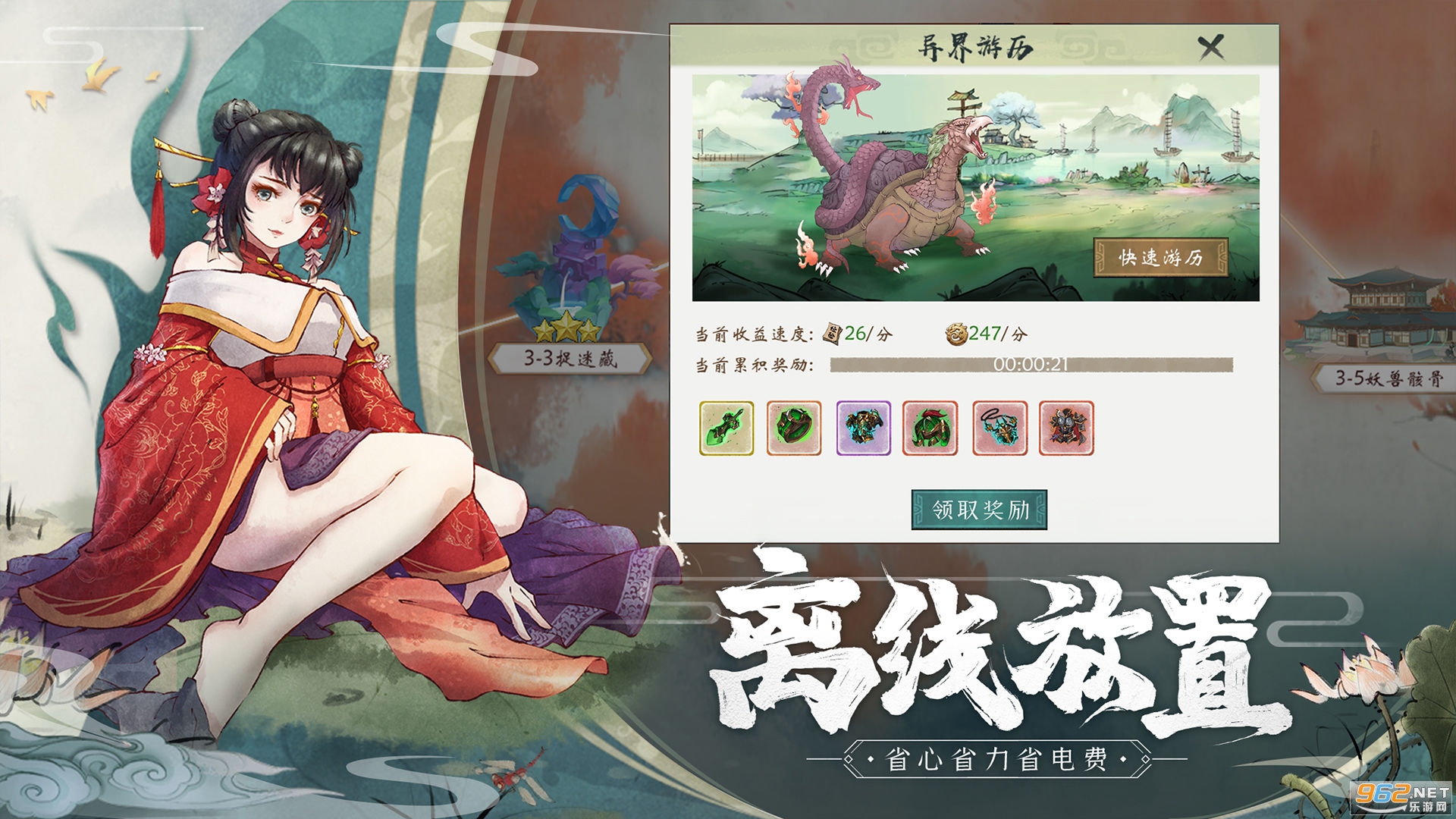 3、放置卡牌玩法,不肝不氪,五大阵营数十位神话角色任你挑选。