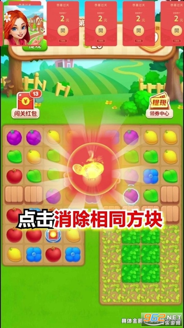 《消除小镇》是一款玩消除赚红包的休闲赚钱游戏,最经典三消玩法为你带来,快速移动里面的各种元素让它们都能够消除,每完成一个关卡挑战或者打破记录都能领取红包,每天领取红包和提现的次数是没有上限的,另外这款游戏还加入了很多精彩的剧情消除玩法,一起来试试吧。