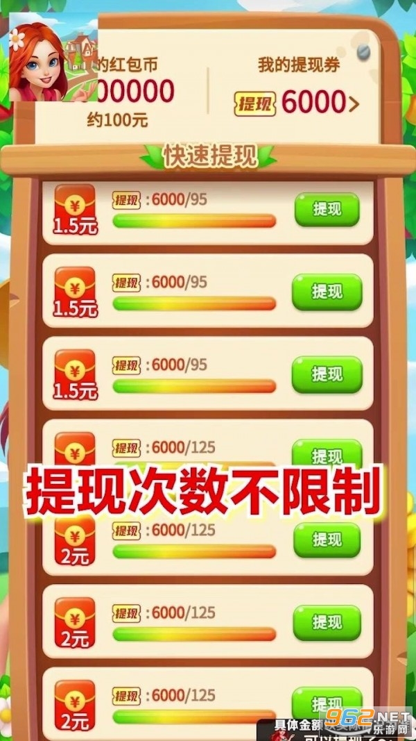 游戏中所有的消除任务和各种关卡都能挑战,没有次数的限制,可以尽情挑战,并且记得每天登陆游戏签到哦,连续签到一样能领取红包的,全新玩法全新风格消除赚钱游戏,大家一定不要错过哦。