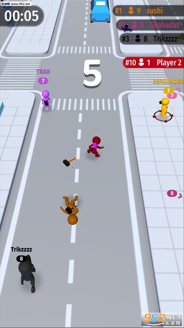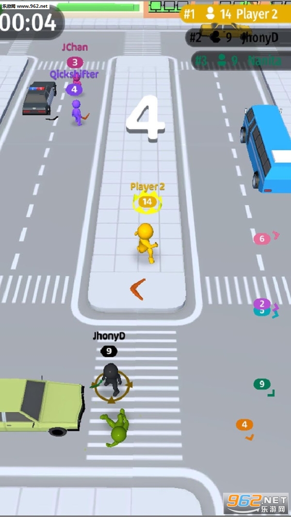 一个大开阔的场景下的自由大乱斗,玩家可以操作一个小人去和其他的玩法对战,并想法强大自己干掉别人。