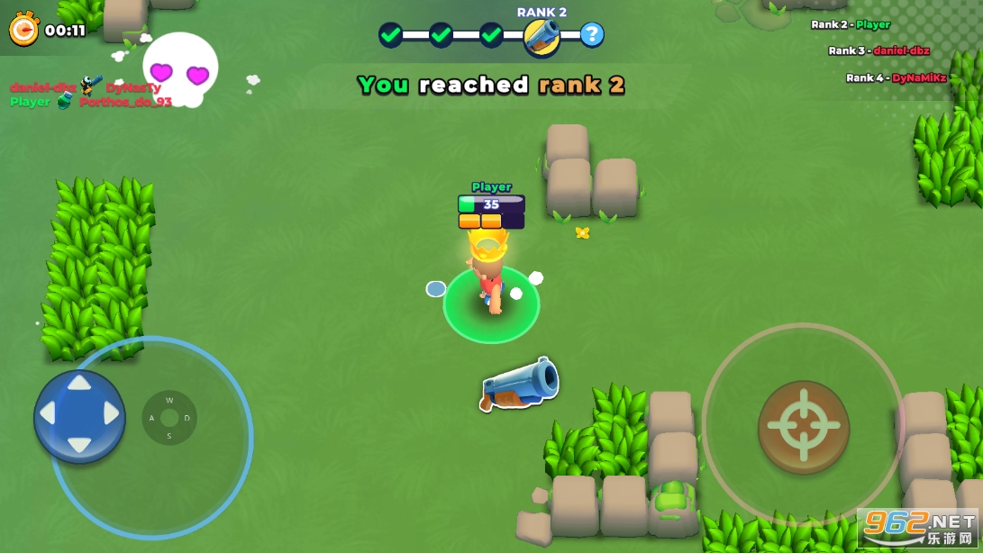 多人射击大乱斗,AOE的武器会伤害到所有的人哦,要注意走位躲避轰炸,消灭敌人后会随机的获取一把强力武器,利用武器来消灭敌人获取分数,rank分越高名次越高哦,喜欢就快来下载吧