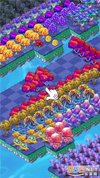 在漂亮的世界中随意拖动物体,将同种的3个物体匹配,使其进化为更好的东西!