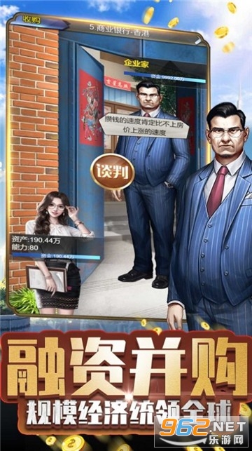 挑战关卡,商业谈判,收购各公司,让各金融巨头每天向你汇报工作和业绩。随着公司规模提升,自动解锁招纳更多的优秀员工前来效力。