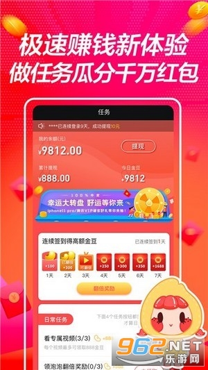 《豆乐短视频APP》是一款全新上线的美女短视频赚钱软件app,在这里玩家可以体验一边刷美女短视频一边赚红包,刷得越多福利越多,提现也方便,感兴趣的朋友快来962下载吧!