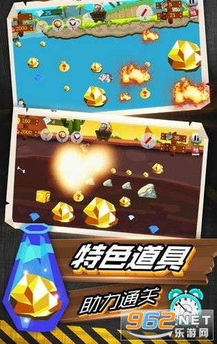 2、除了金矿,游戏中还有更多珍贵的钻石矿产,可以兑换成更多的钱;
