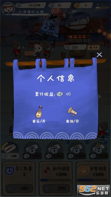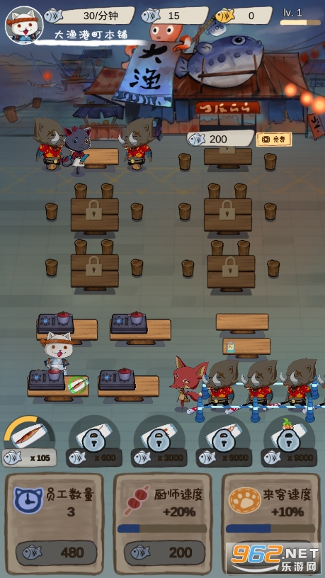 2、厨师猫咪是为你提供大量收益的基础,做出的菜越好吃你的生意越好收益越高。