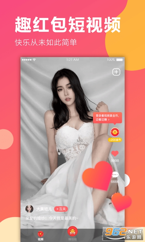 《趣红包短视频版app》是一款全新的手机短视频赚钱平台,在这里玩家可以体验一边刷美女短视频一边赚红包的快乐体验,而且不需要任何的门槛,操作也非常简答,感兴趣的小伙伴欢迎来962下载吧!