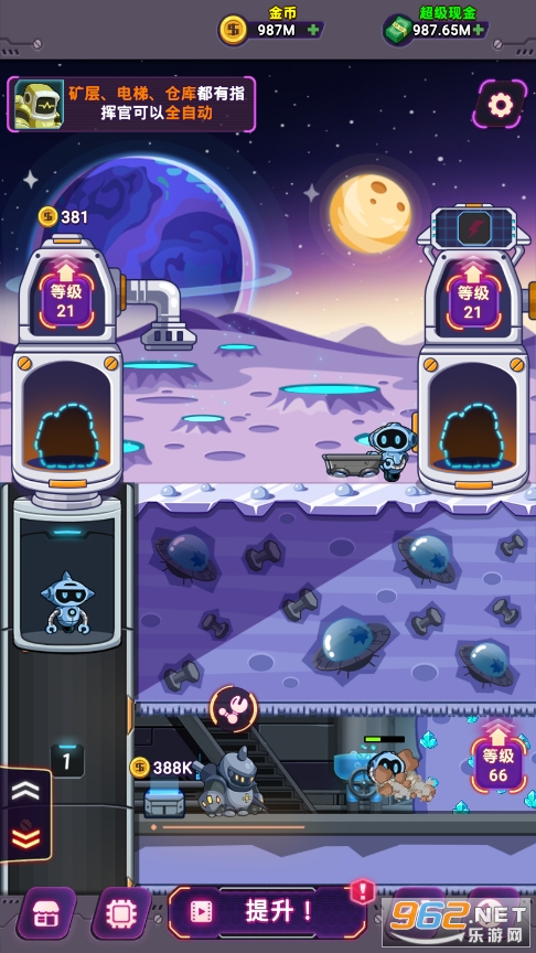 模拟矿工类休闲游戏,不需要玩家们太多操作就可以直接进行挖矿的工作,全程全自动加上挂机放置,游玩起来非常的轻松休闲哦,还有不同的矿工机器等待玩家们来探索,喜欢就快来下载吧