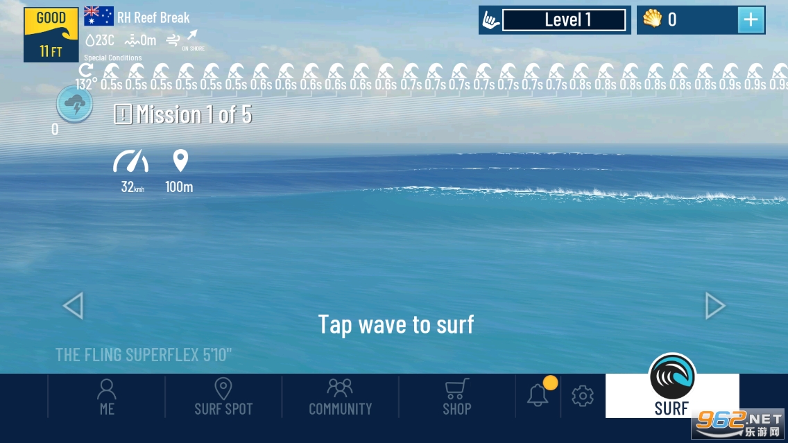 操作方式十分简单,游戏真实模拟了冲浪的体验