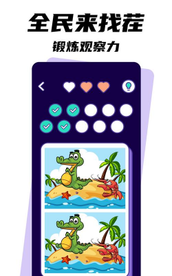 1、爸爸妈妈们可以一起和宝宝玩这款找茬游戏,跟时间条赛跑,挑战你的观察力!