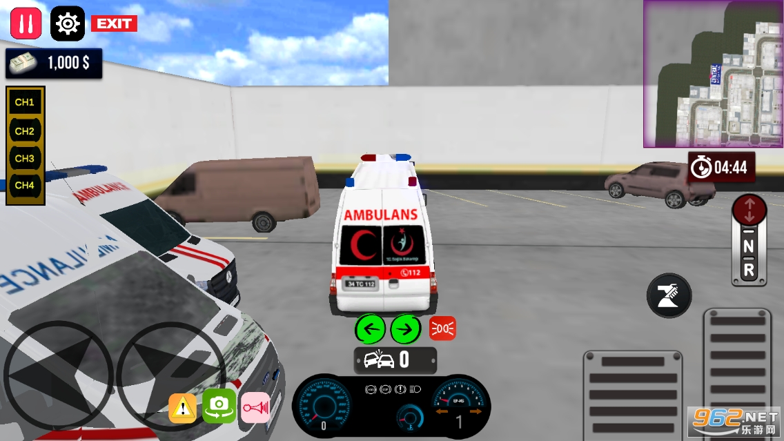 3、路上可能会有人流,因此我们为您提供了逼真的警笛功能。按下救护车警笛,将车停在一边