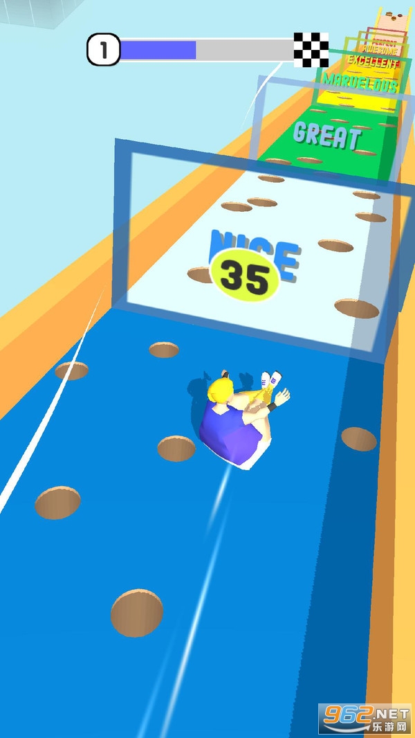 游戏的操作还是很简单的,轻松的单手指滑动屏幕去收集更多的食物,让自己越来越胖,成为最胖的胖子在赛道上横冲直撞,将所有的对手直接顶飞出去,最后以最大的体重飞出去撞击球瓶,获得最佳保龄球胖子称号。