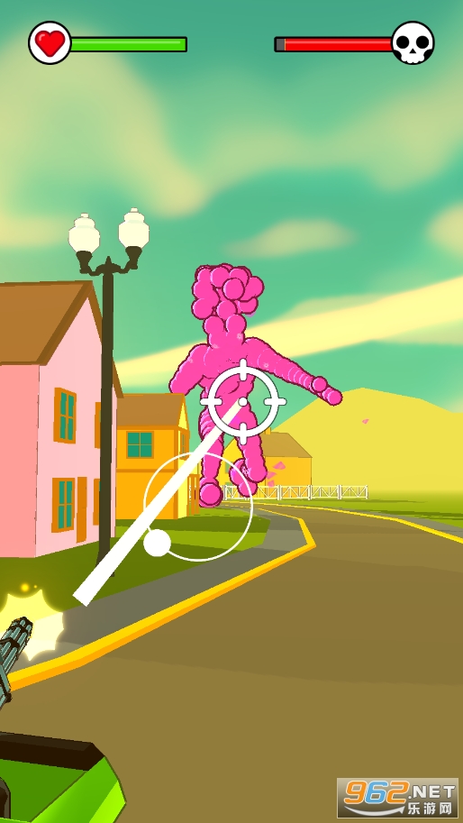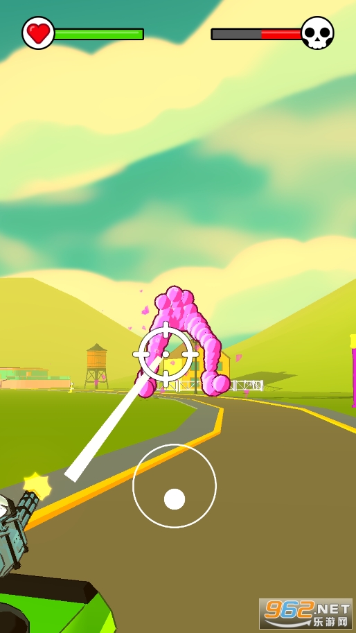玩家需要使用夹紧的分路器瞄准巨人并击打其四肢。从四肢射击时,氦气球会飞离伤口部位。 细微差别:当从腿上射击时,巨人会放慢脚步。当击中头部时,更多的HP被移除,巨人的打击将减轻痛苦。
