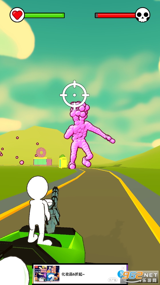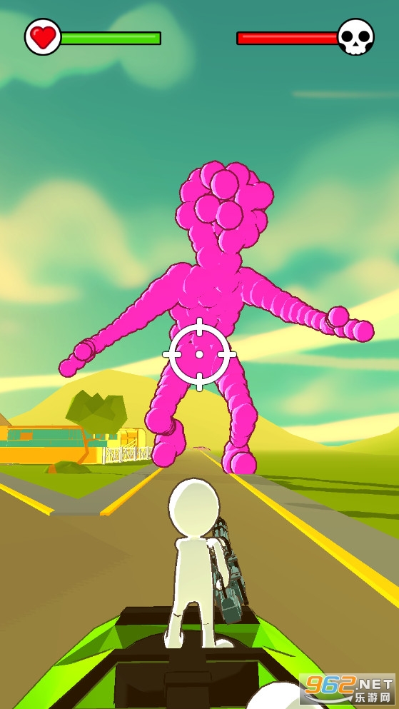 玩家需要使用夹紧的分路器瞄准巨人并击打其四肢。从四肢射击时,氦气球会飞离伤口部位。 细微差别:当从腿上射击时,巨人会放慢脚步。当击中头部时,更多的HP被移除,巨人的打击将减轻痛苦。