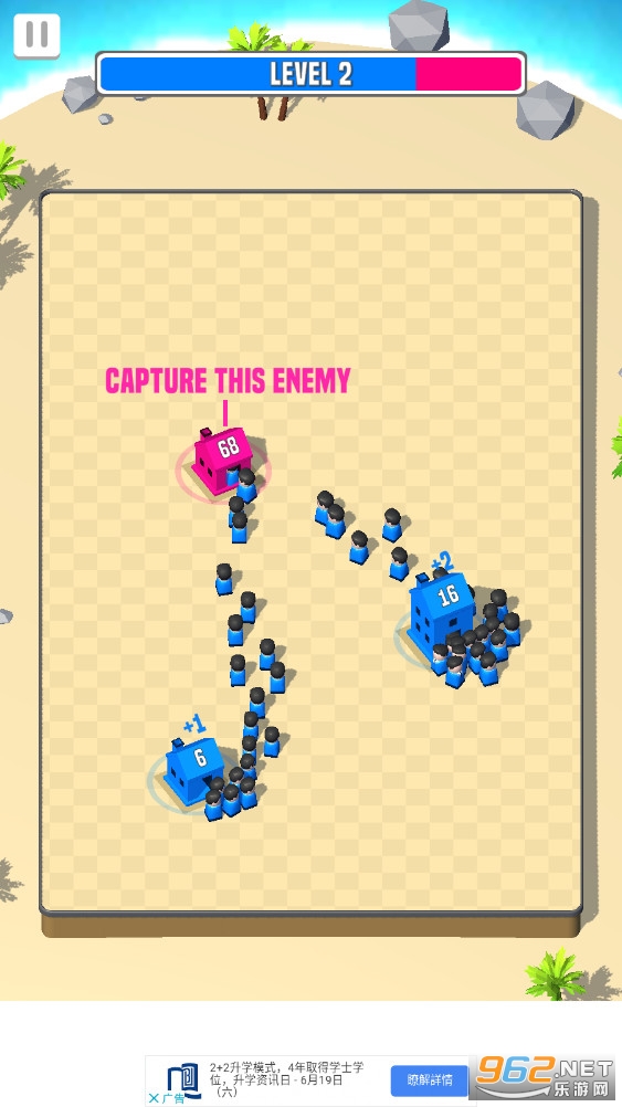 城市战争3D游戏:召集自己的小人准备来一场精彩的战斗,玩家可以根据房子上的数字来判断敌人的人数,你的目标就是击败对手并获得胜利,虽然看起来简单,但是不同的场景会限制你的行动,让你的挑战变的更加独特,感受不一样的激情挑战。