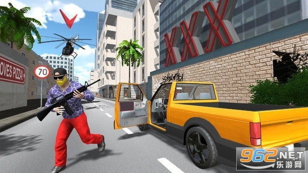 一款非常刺激的射击犯罪类游戏,这款游戏中玩家可以在城市之中疯狂的进行射击搞破坏,可以带给你非常刺激的射击体验,不一会儿警察就会开始通缉你,玩家可以驾驶各种炫酷的跑车和摩托车来逃避警察的追捕,但是还有直升机追捕难以逃脱,你可以停车将直升机打下来。