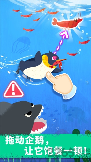 企鹅爸爸正在孵蛋,企鹅妈妈出门捕捉美味的鳞虾喽!宝宝动动小手,引导企鹅捉住鳞虾。要小心身后的虎鲸、海豹哦!