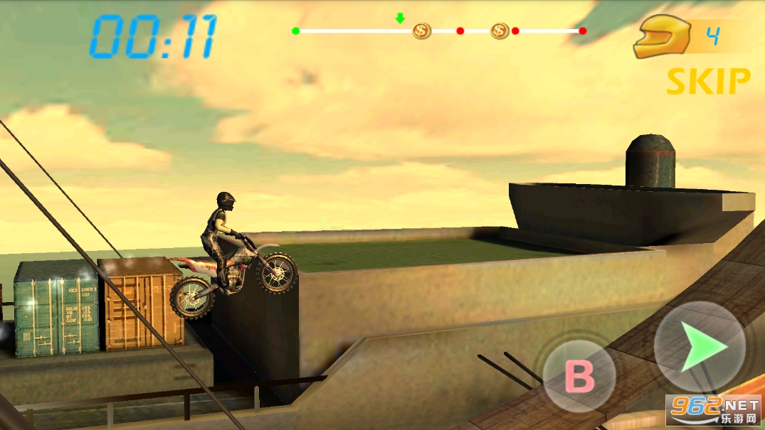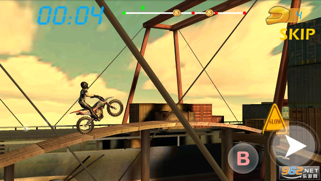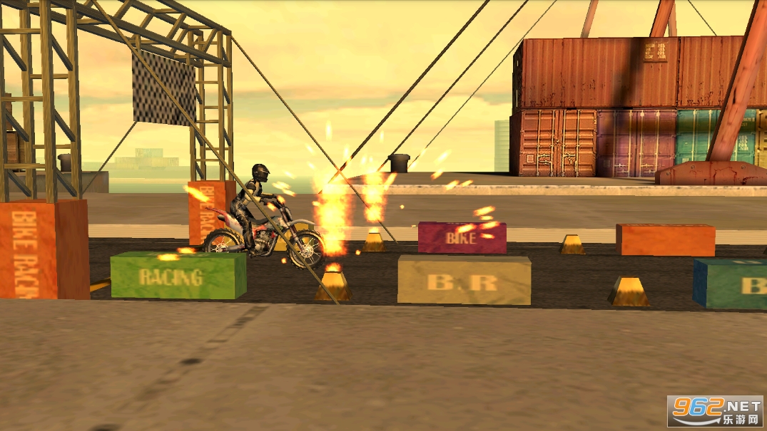 真实的摩托特技竞速游戏,玩家们可以根据自己的技术来决定整个关卡中需要做几个高难度的各种动作,游戏采用了传统的3D技术,在每次特技成功后都会有慢镜头与额外的分数加成哦,喜欢就快来下载吧
