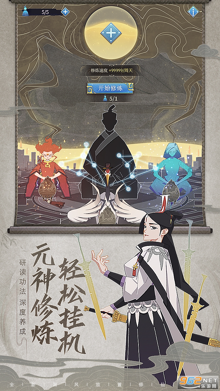 《长生箓》是一款全新国风放置修仙手游,力求还原真实的修仙体验,希望带给诸位修仙爱好者耳目一新的游戏体验。太古洪荒的历史中,玩家们可不短的修炼自己的灵根,轻松休闲的挂机玩法搭配策略的回合制玩法,为觅的长生之箓。