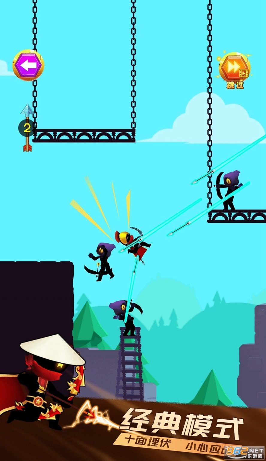 《一箭超人》是一款十分有意思的射击闯关类游戏,游戏中你通过箭术比拼来与敌人进行正面较量,熟悉你的人物箭矢射程范围,及时的对你发射出去的箭矢进行观察,以此来判定敌人的方位是否能够精准的受到伤害!